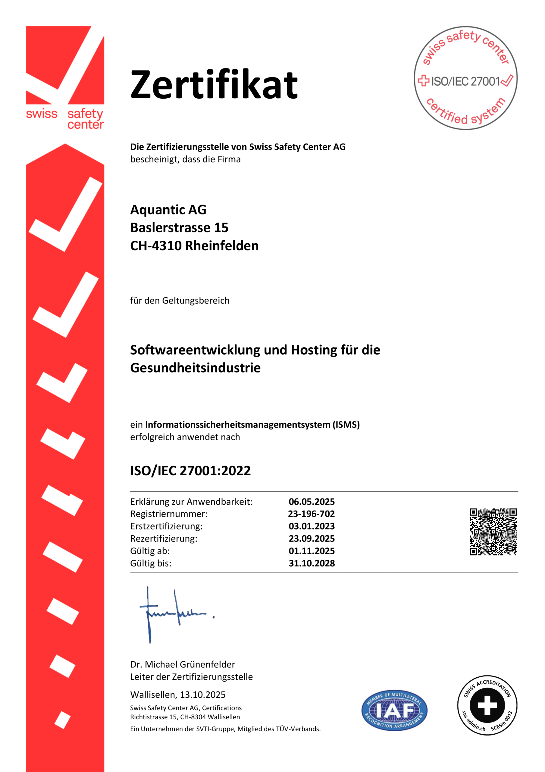 Im Gesundheitswesen ist Aquantic schon seit über 20 Jahren tätig und kennt deshalb auch die Anforderungen und Herausforderungen der Branche bestens. Das Ziel des Unternehmens ist es, seinen Kunden mit seiner Softwarelösung zu helfen, einen Schritt voraus zu sein, wie es auch sein Slogan sagt: „CLEARLY AHEAD“.